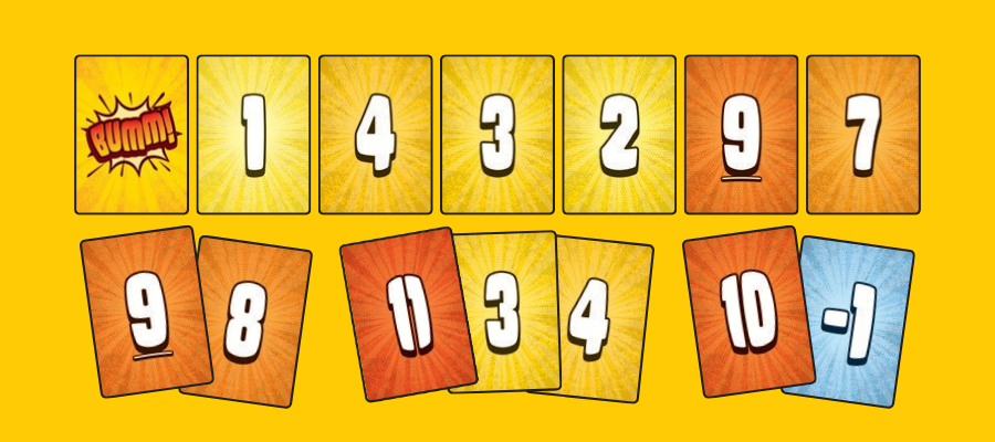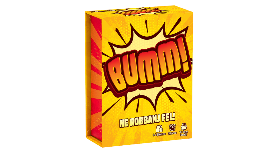 A Bumm! egy feszült, pörgős kártyajáték, ahol minden kijátszott lap közelebb visz a győzelemhez – vagy a robbanáshoz. Figyelsz, számolsz, kockáztatsz, és közben eldöntöd: most még bevállalod… vagy inkább visszavonulsz?